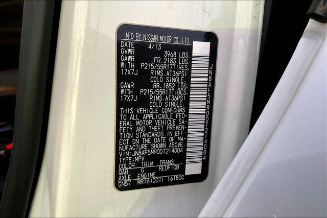 CARFAX One-Owner. Clean CARFAX. Certified. Pearl White Metallic 2013 Nissan Juke SL FWD CVT 1.6L I4Homer Skelton is committed to meeting your automotive needs with speed flexibility and friendly customer service. Recent Arrival! Odometer is 43224 miles below market average! 27/32 City/Highway MPGCertification Program Details: COVERS ALL OF THESE SYSTEMS AND COMPONENTS: Engine | Transmission | Front-wheel drive assembly Rear-wheel drive assembly Cooling system Fuel system | Front-wheel steering assembly Air-conditioning & heating system Brake system Audio entertainment system | Suspension assembly Electronic instruments Chassis hardware Electrical system PLUS...24-HOUR EMERGENCY ROADSIDE SERVICE Provides towing assistance; dead battery service; flat tire assistance; fuel oil and water delivery service; and lockout service expenses up to $50 per occurrence for 12 months from the vehicle sale date.Carpeted Floormats & Cargo Mat (L93) Center Armrest and Splash Guards.